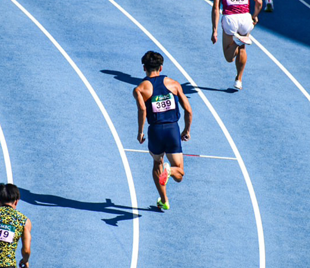 中学から陸上を始め、200mで2度全国優勝しました。現在は母校である九州産業高校の陸上部顧問に教えを乞い練習しています。