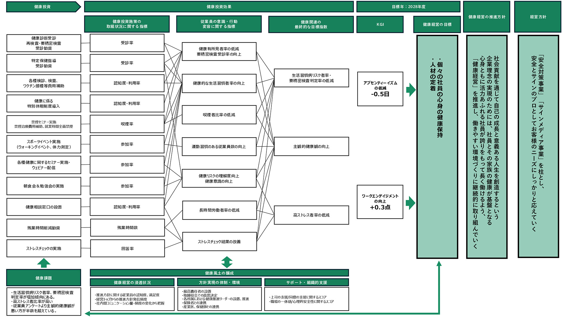 弊社では経営計画において、人財戦略に「健康経営」を位置づけています。