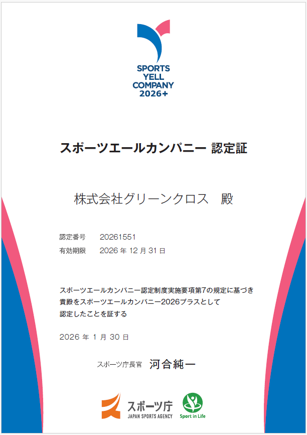 当社は、従業員の健康増進のためにスポーツの実施に向けた積極的な取り組みを行っている企業として、スポーツ庁「スポーツエールカンパニー2026」に認定されました。
